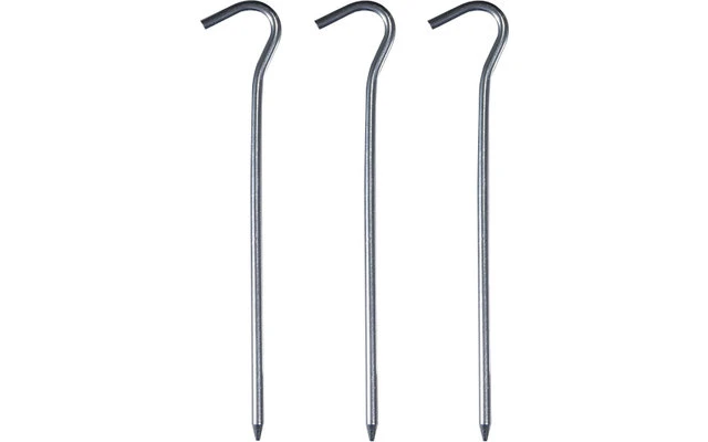 Ultraleichter und unverwüstlicher Erdnagel mit offener Öse. Geeignet für harte Böden. 3 Stück verpackt im Set.