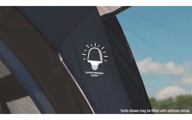 - Vorbereitet für das einzigartige integrierte Outwell Nightlight System mit Umgebungslicht für leichten Zugang und Orientierung. Das atmungsaktive Material des TC-Überzelts reguliert das Klima im Zelt unabhängig vom Wetter